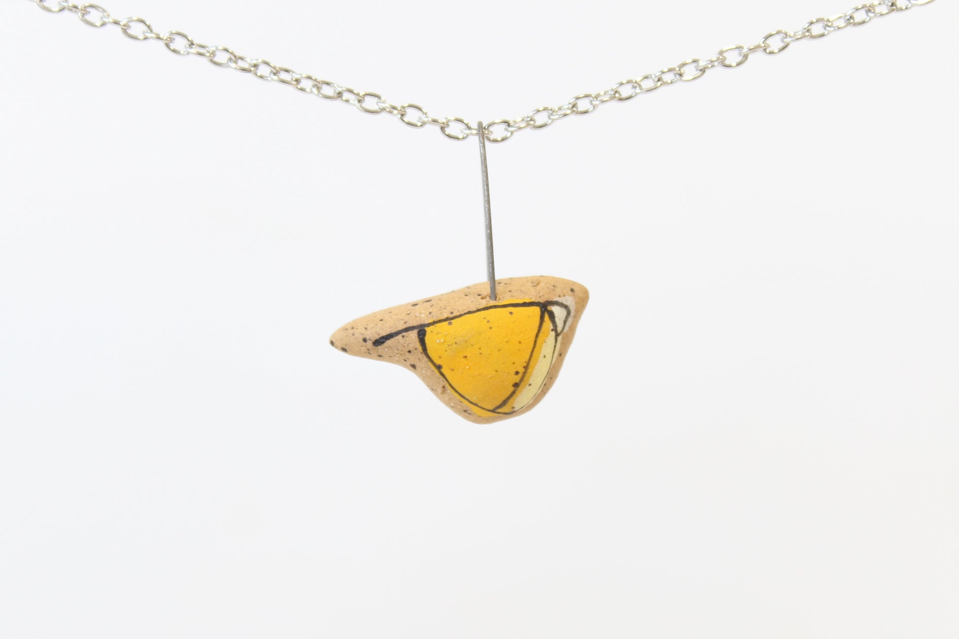 1074. Yellow Underglaze Bird Necklace - 1" x 1"