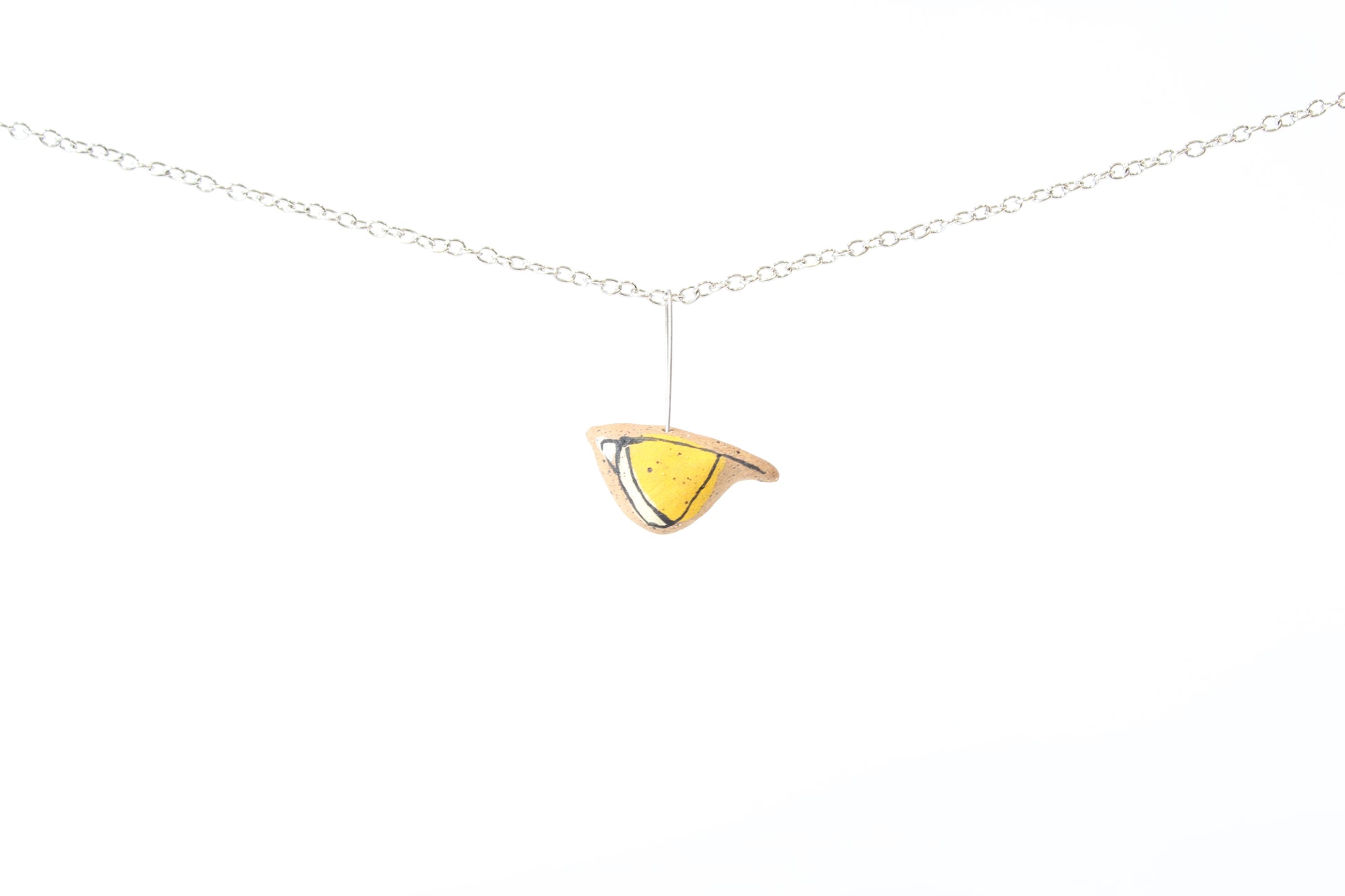 073. Yellow Underglaze Bird Necklace - 1" x 1"