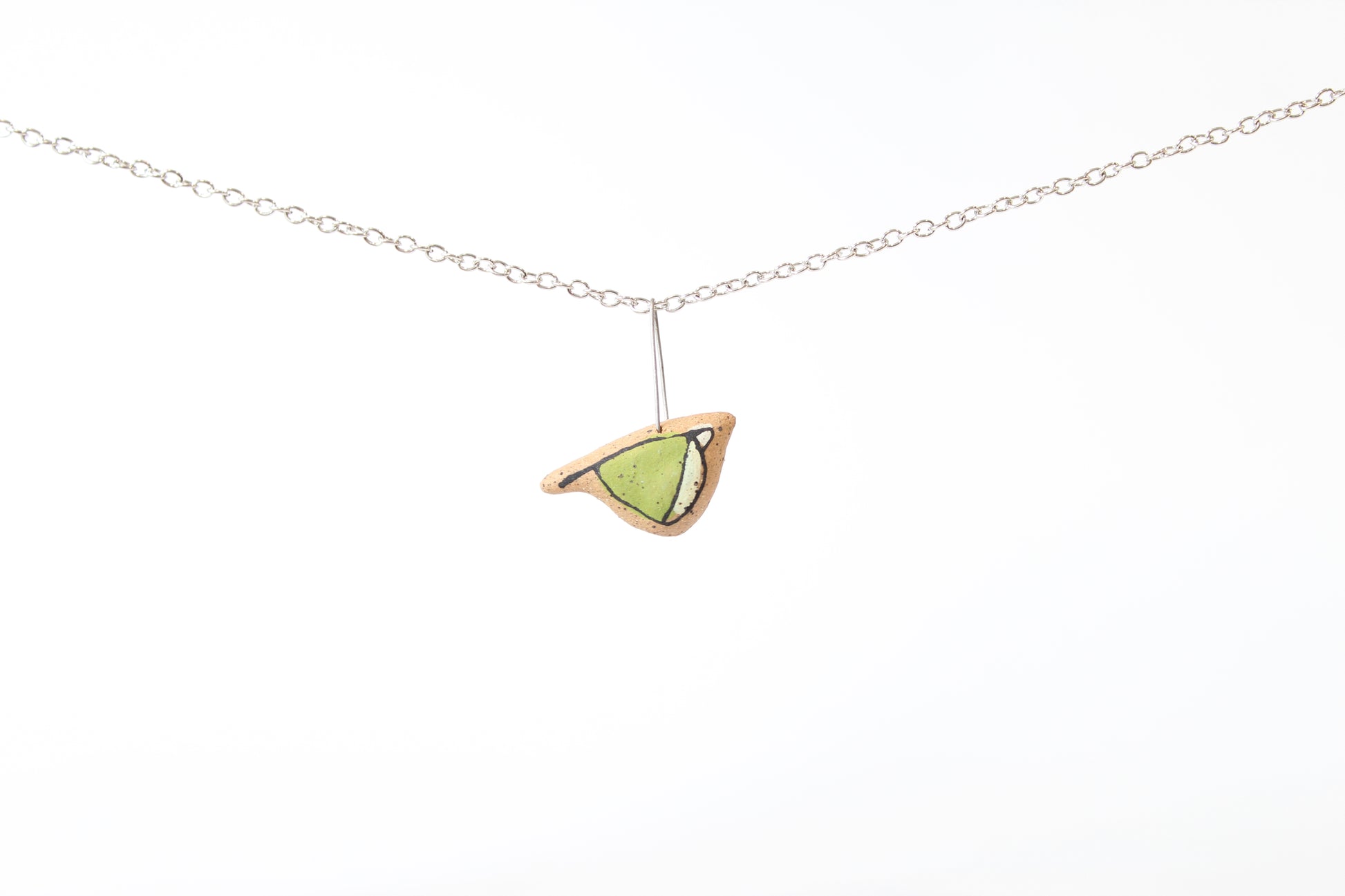 074. Green Underglaze Bird Necklace - 1" x 1"