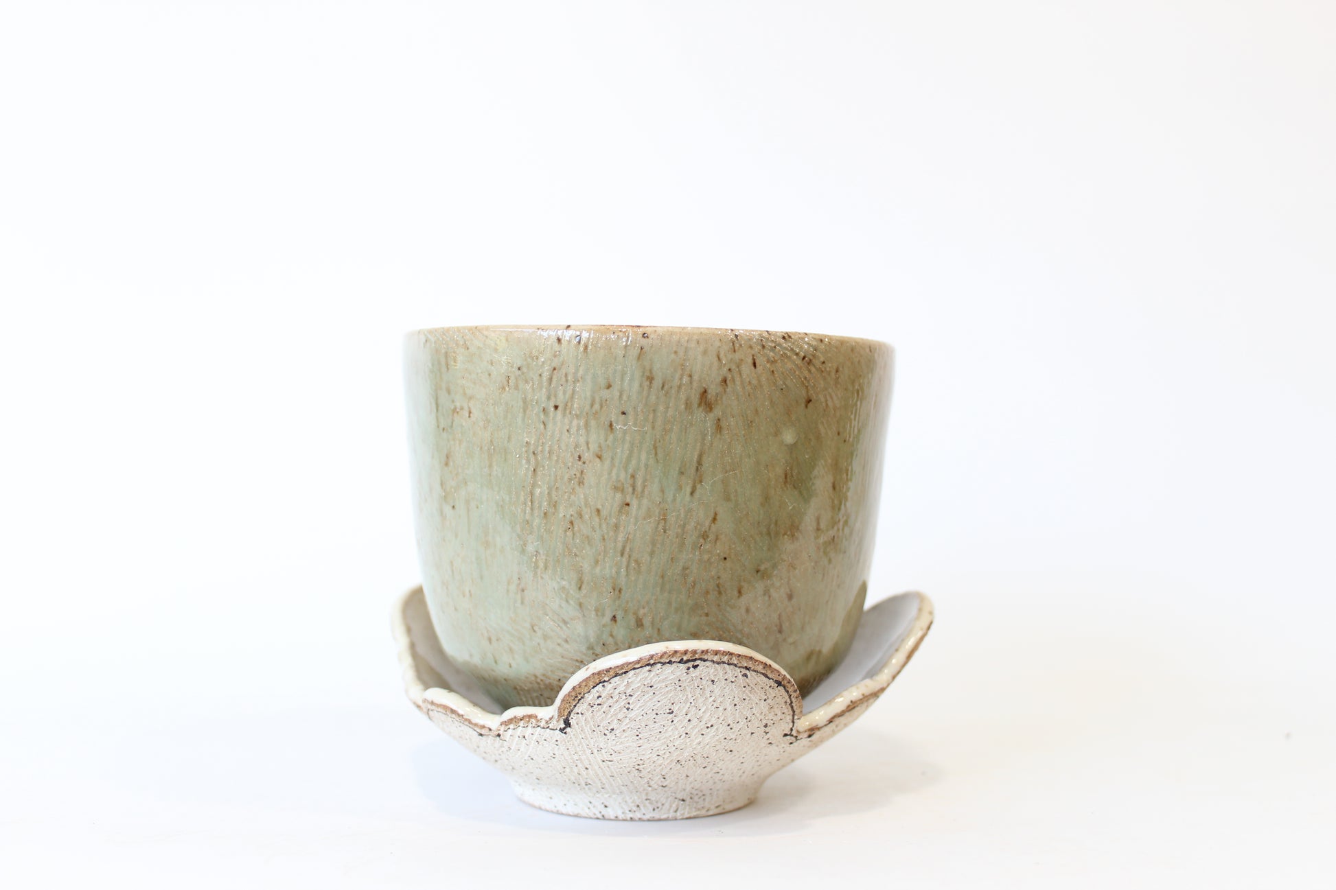 044. Textured Cloud Planter with Tray -Medium - 4.5''h x 5.75''w