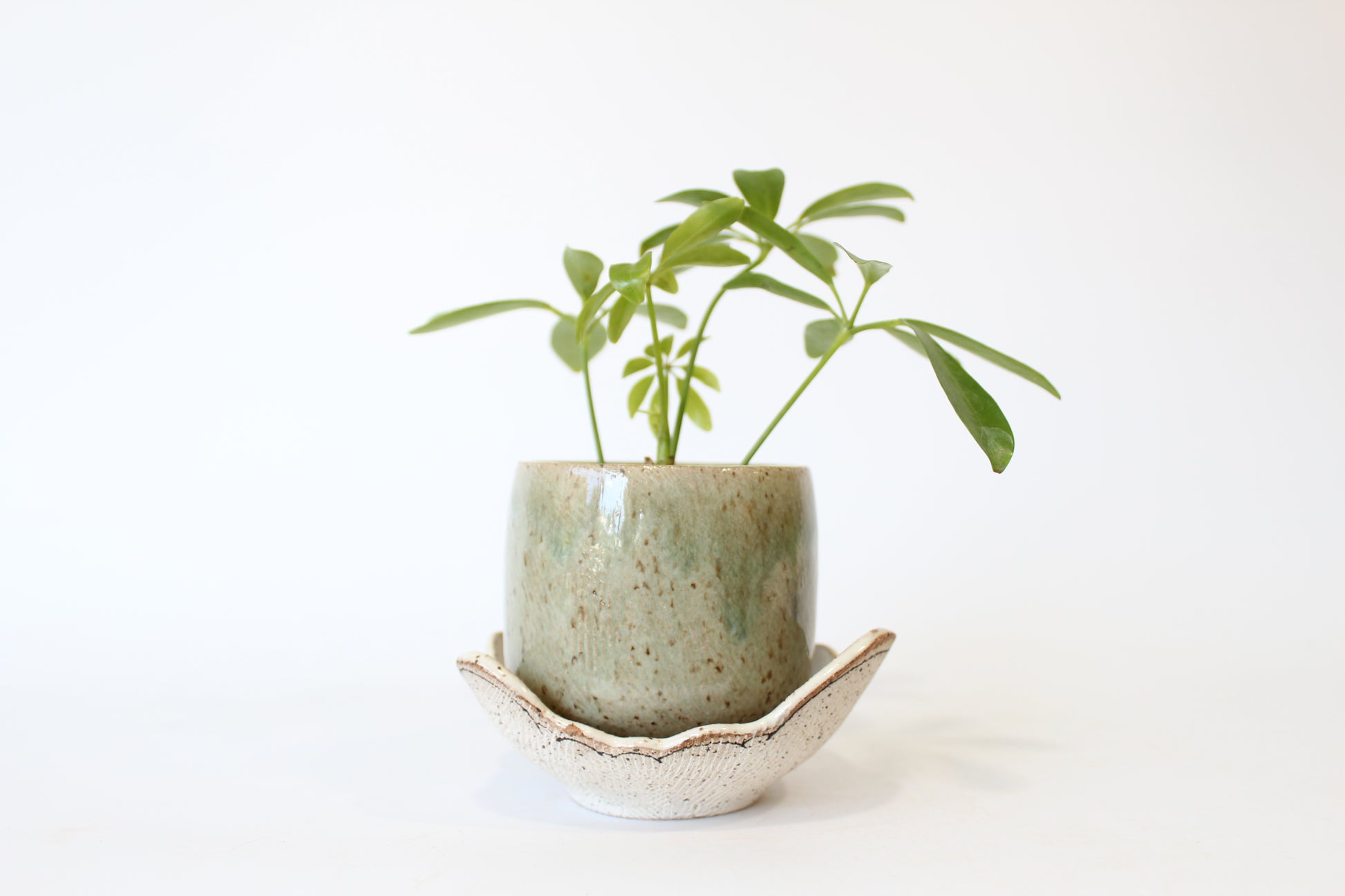 046. Textured Cloud Planter with Tray - small pot - 3.5''h x 4.5''w