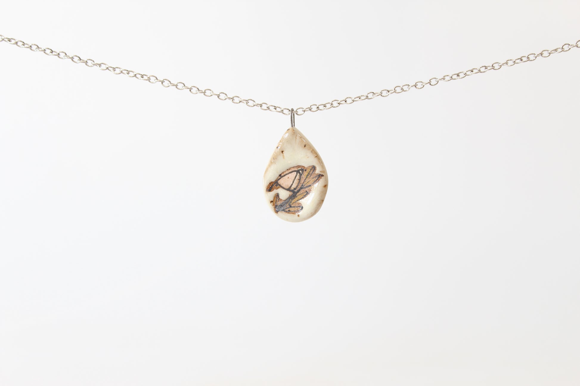 Ceramic pendant with choice of 16, 18 or 20 inch stainless steel cable chain with lobster clasp.