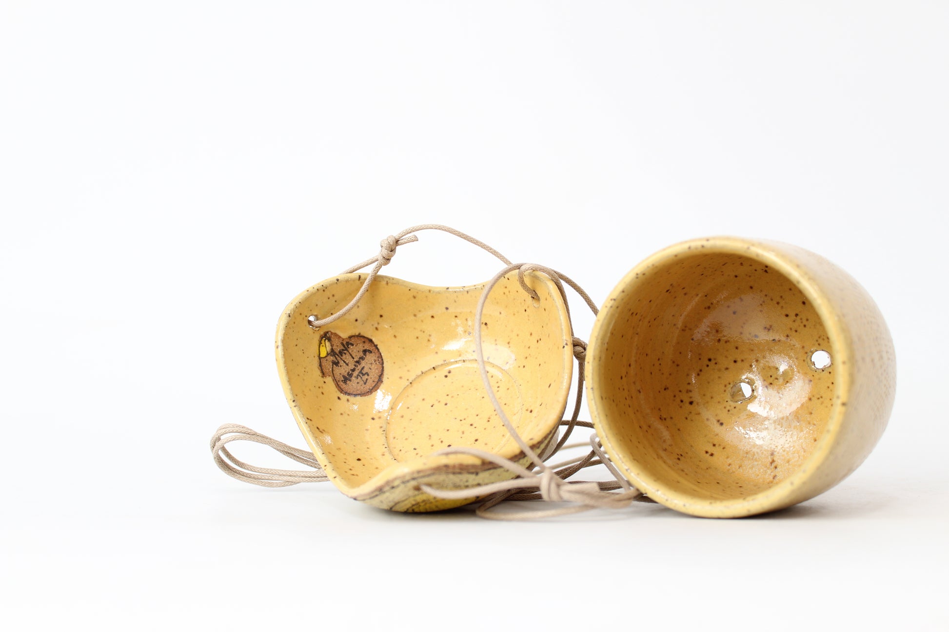 051. Textured Yellow Wave with Circles Planter - small pot - 3.5''h x 4''w