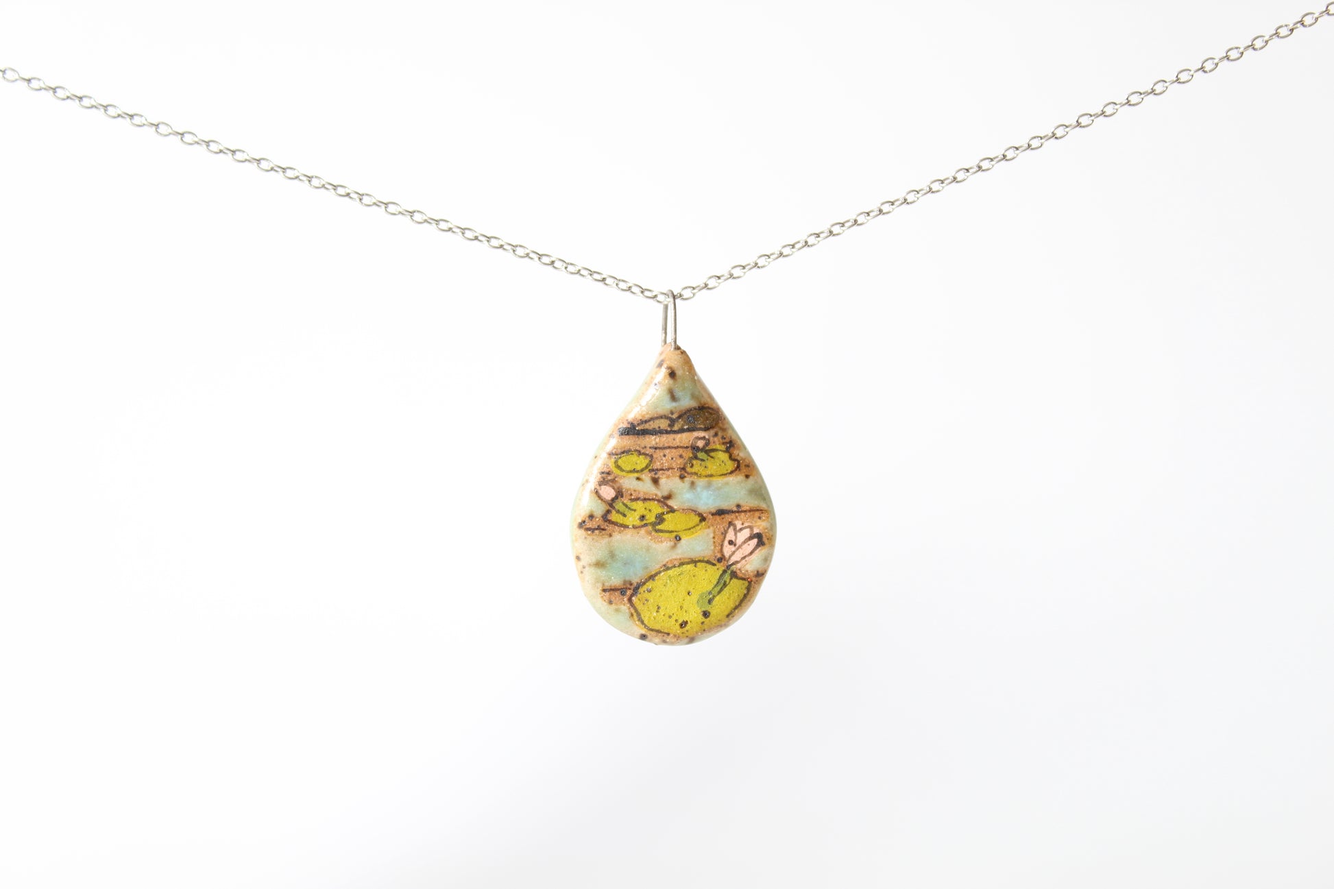Ceramic pendant with choice of 16, 18 or 20 inch stainless steel cable chain with lobster clasp.
