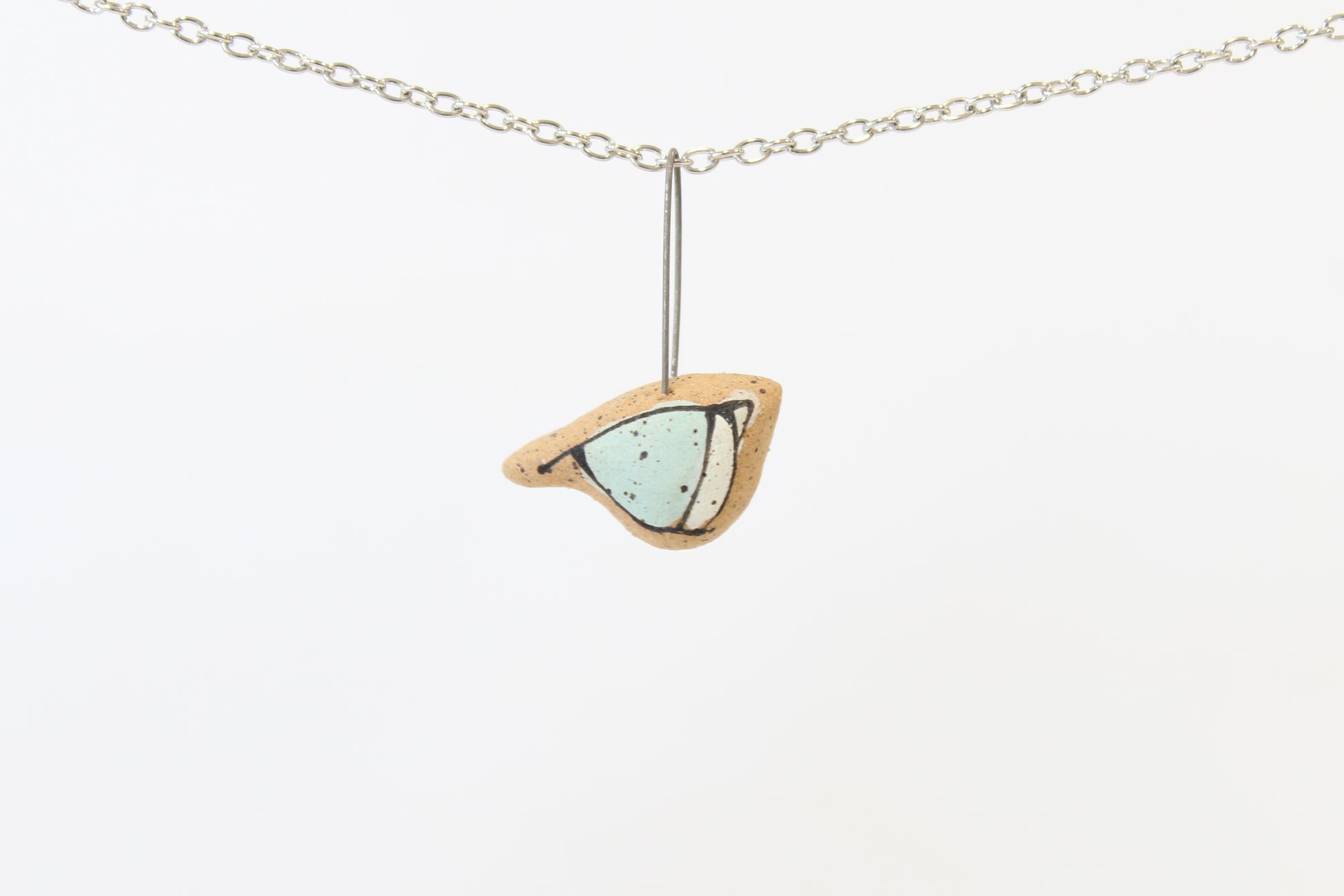 1071. Light Blue Underglaze Bird Necklace - 1" x 1"