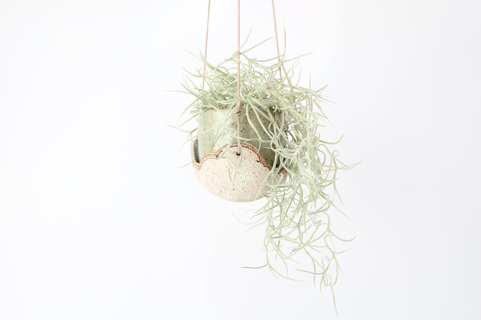 049. Textured Cloud Hanging Planter - Light Turquoise - small pot - 3.5''h x 4''w