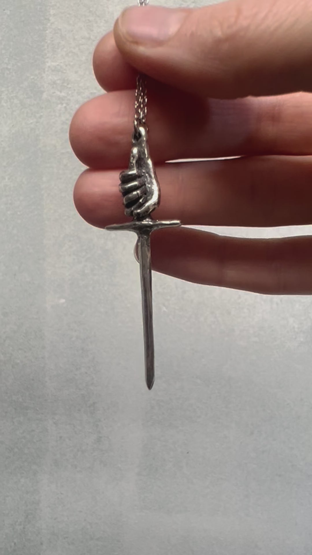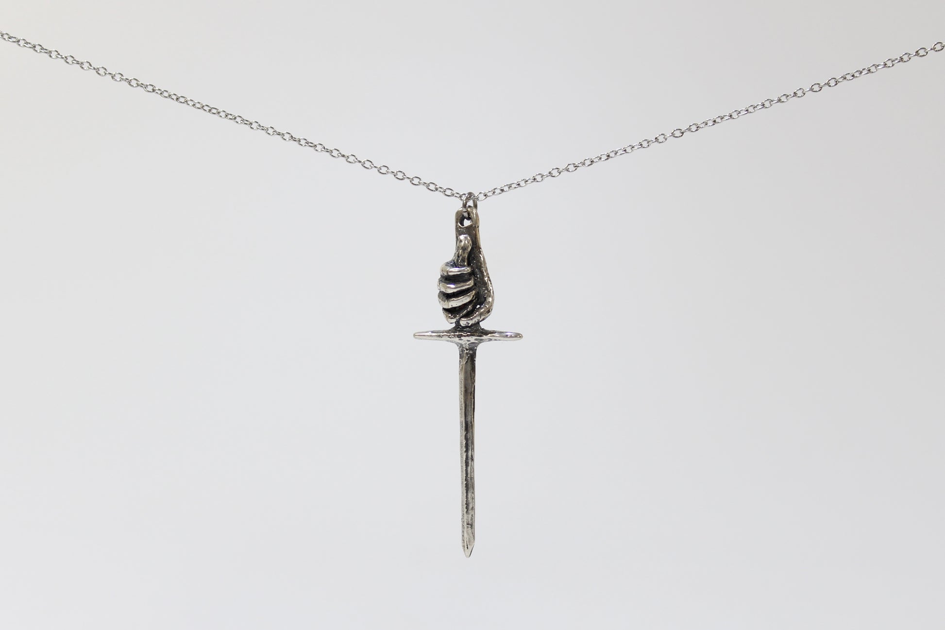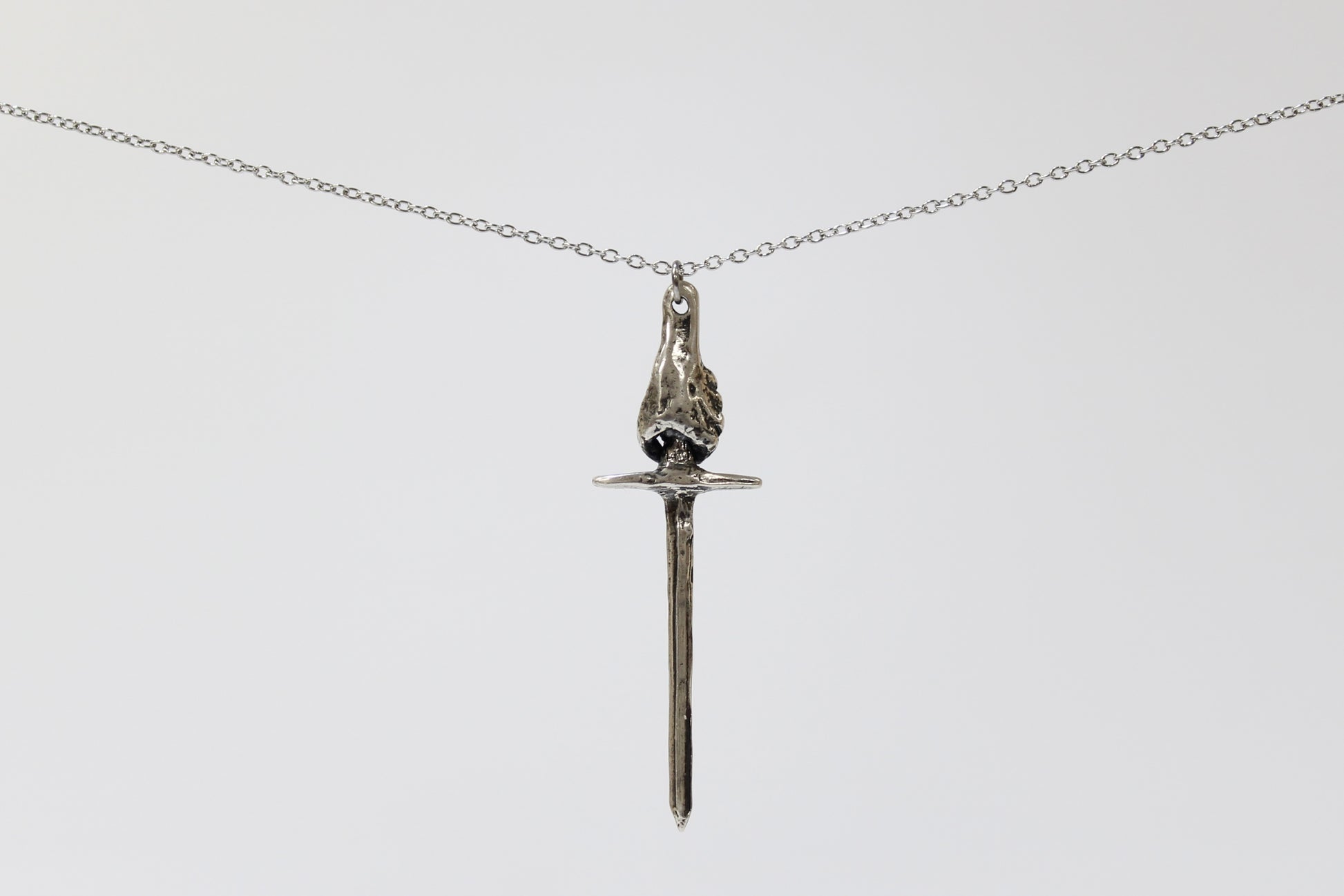 SILVER Ace of Swords Pendant Necklace. Sterling silver. 1" x 2.5". Select chain length 16, 18, 20 inch
