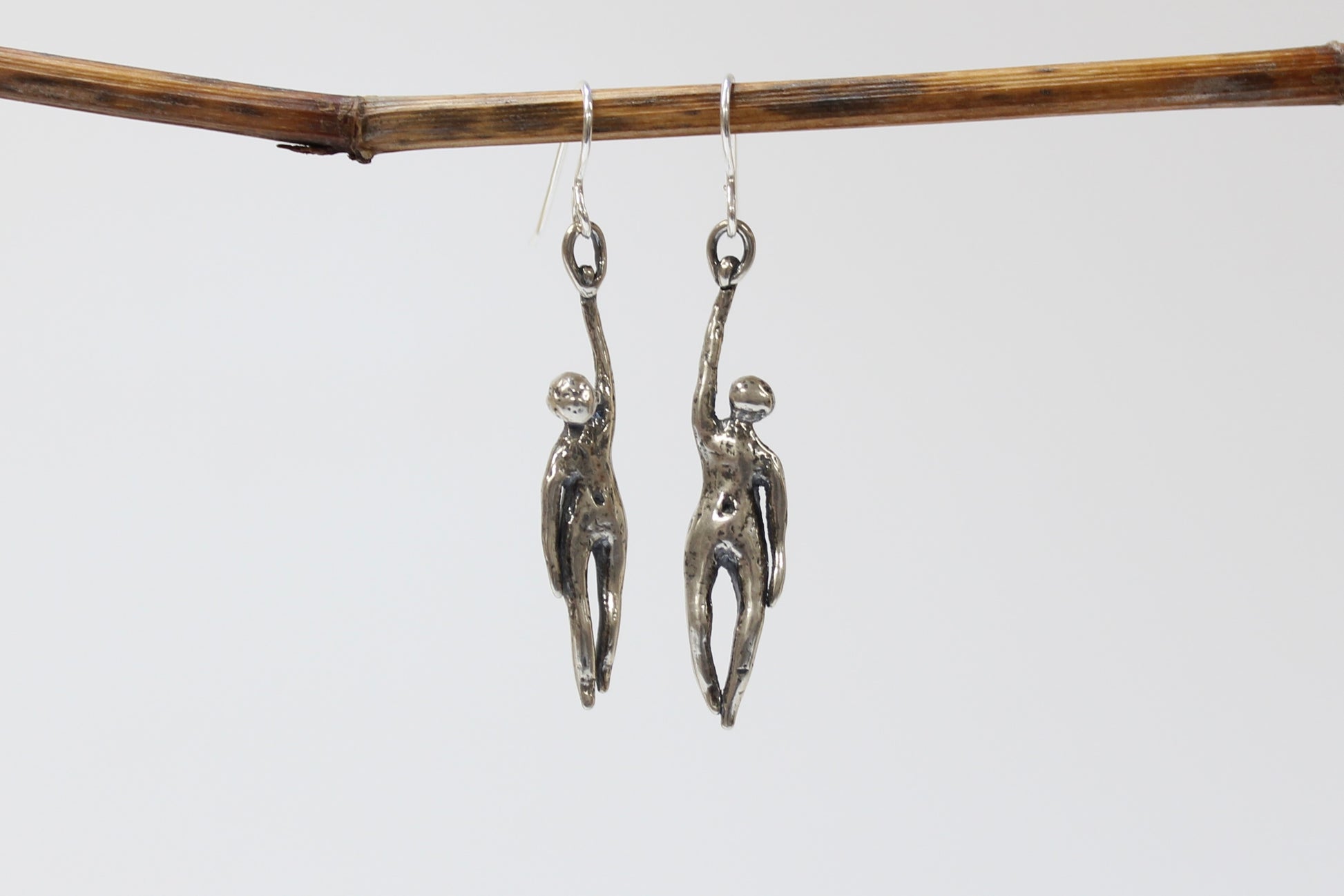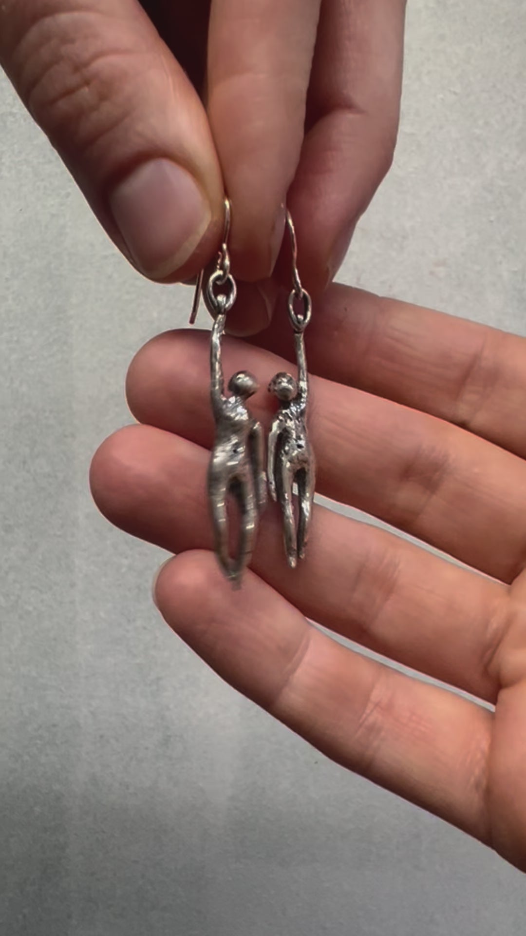 SILVER Hang in There Buddy Earrings. Sterling silver. 1 1/2" x 1/2"