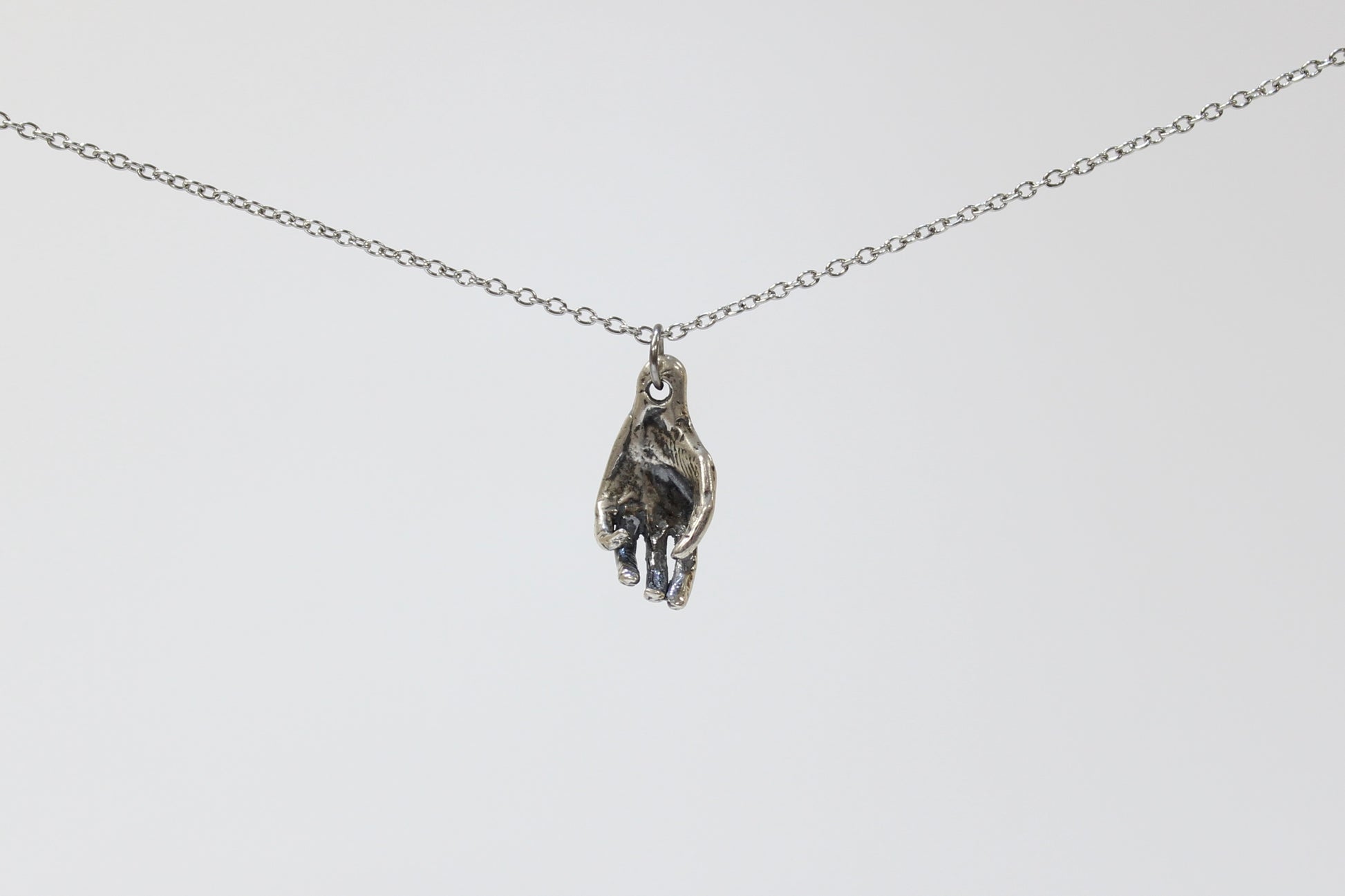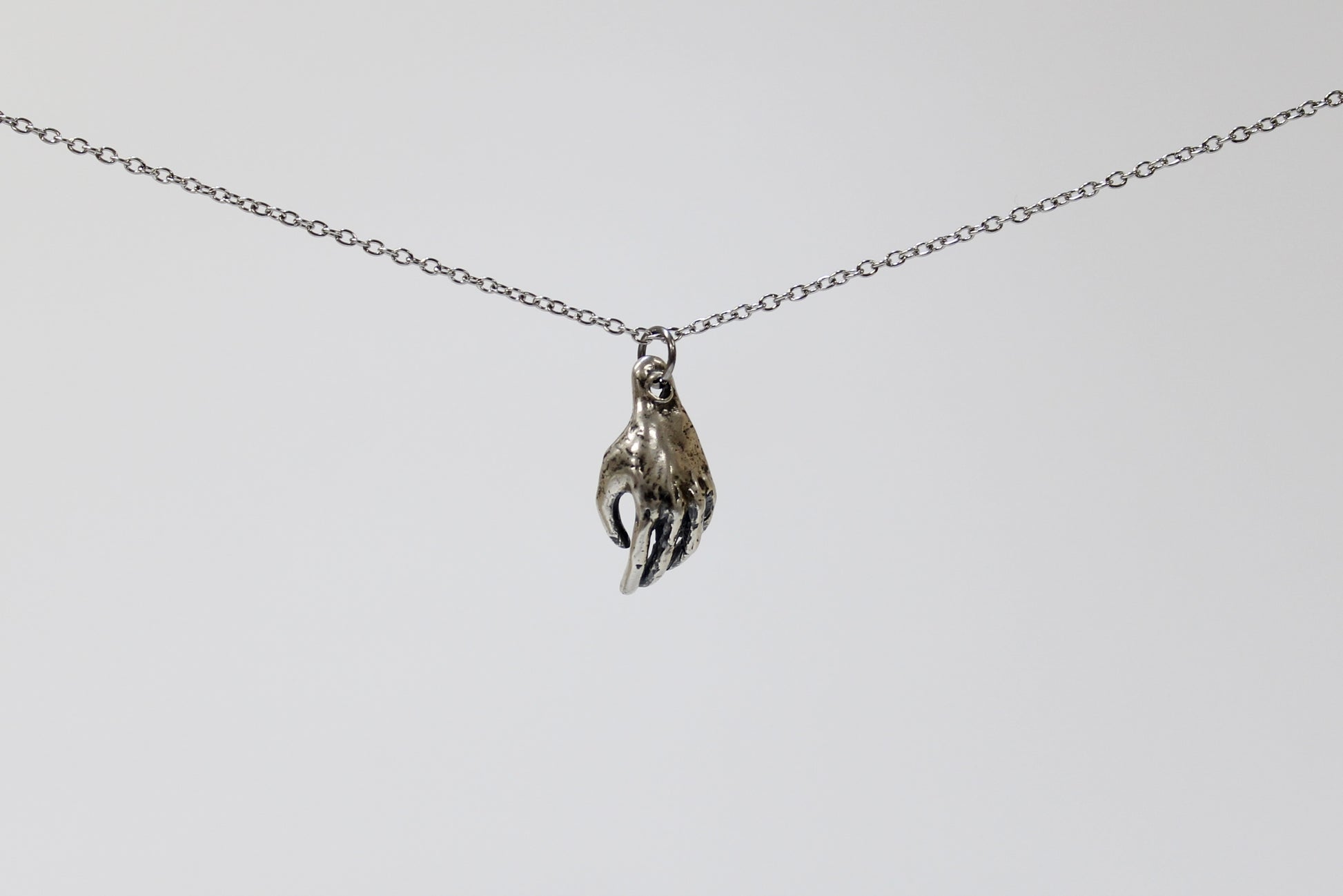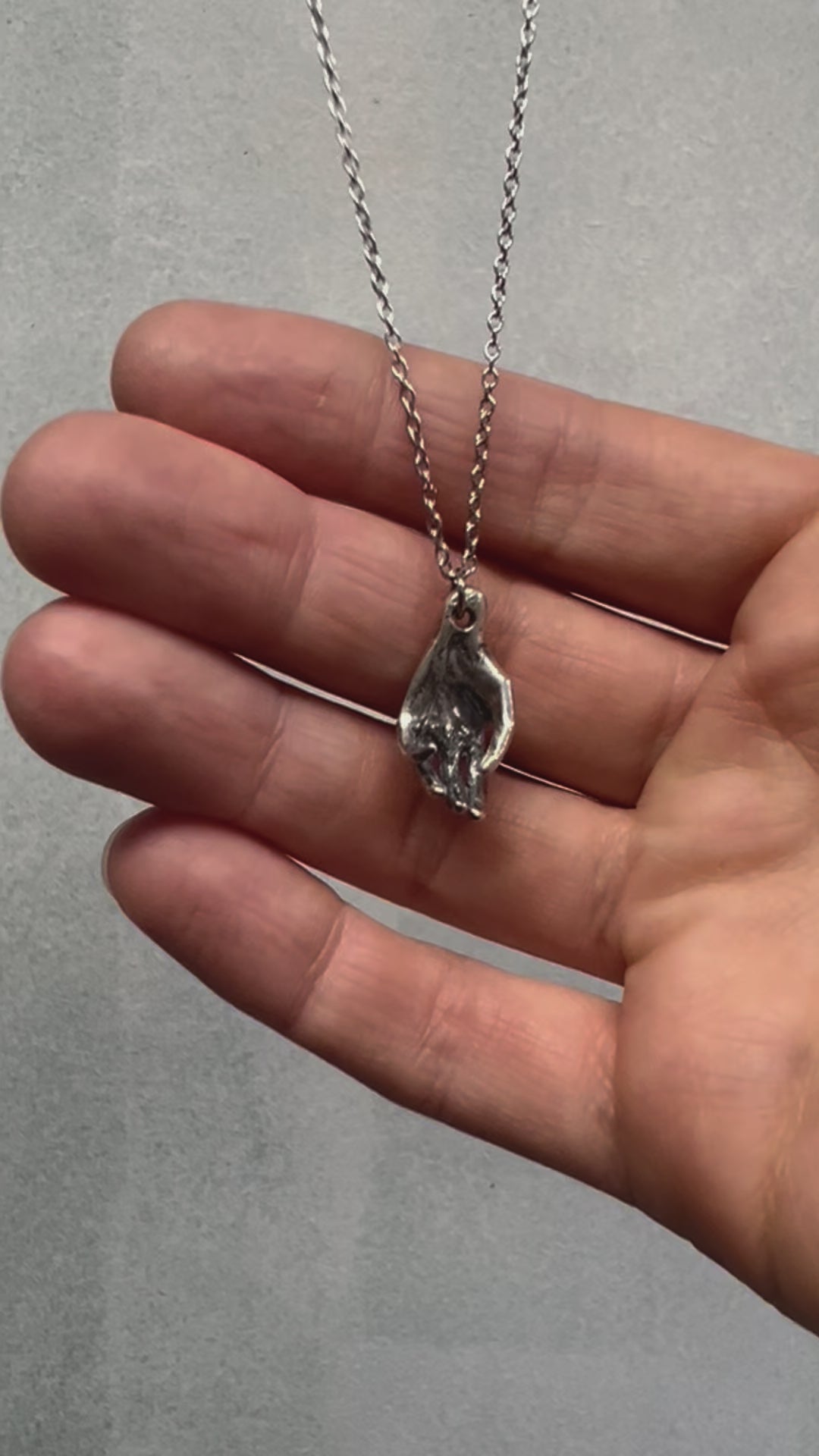 Hand Pendant Necklace. Sterling silver. 1" x 2.5". Select chain length 16, 18, 20 inch