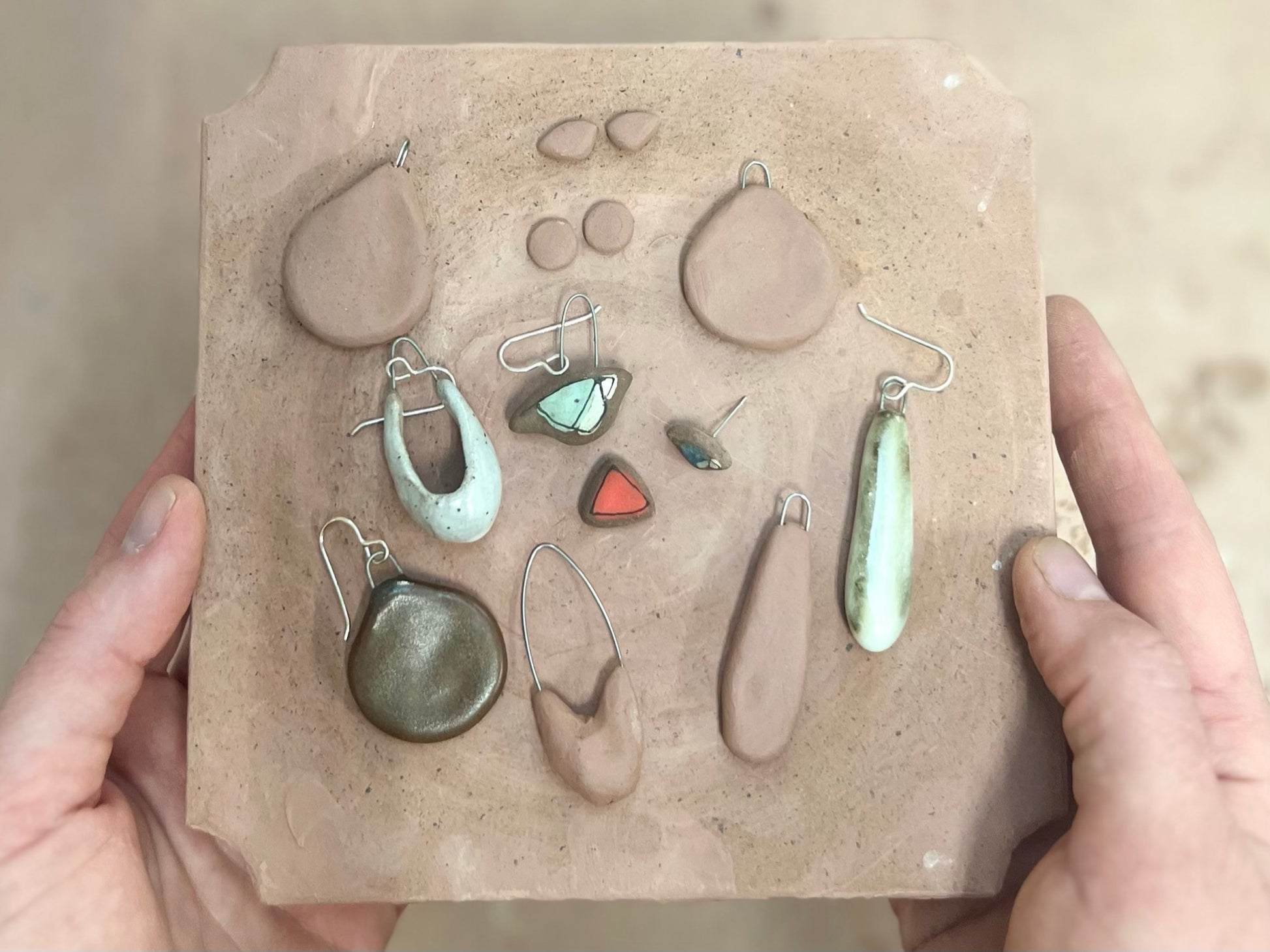 Making jewelry is a great entry into the ceramic world since they are so small so you don't need a big kiln (or wouldn't take much room in a shared kiln) and you don't need a wheel or much fancy equipment. I have posted a supply list of what I used in this workshop here.